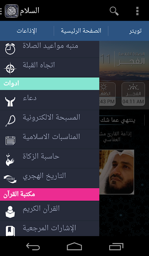 - القران الكريم مع ترجمة إلى 36 لغة مع تفسير الجلالين مع قراءة صوتية لأكثر من مقرئ وإمكانية وضع العلامات المرجعية ومشاركة القراءة