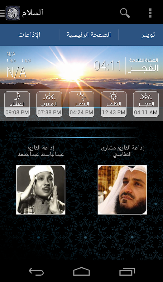 - منبه عند كل صلاة من إمكانية ضبط الوقت و إختيار نغمة التنبيه أن تكون الأذان
